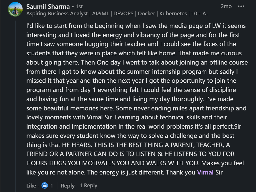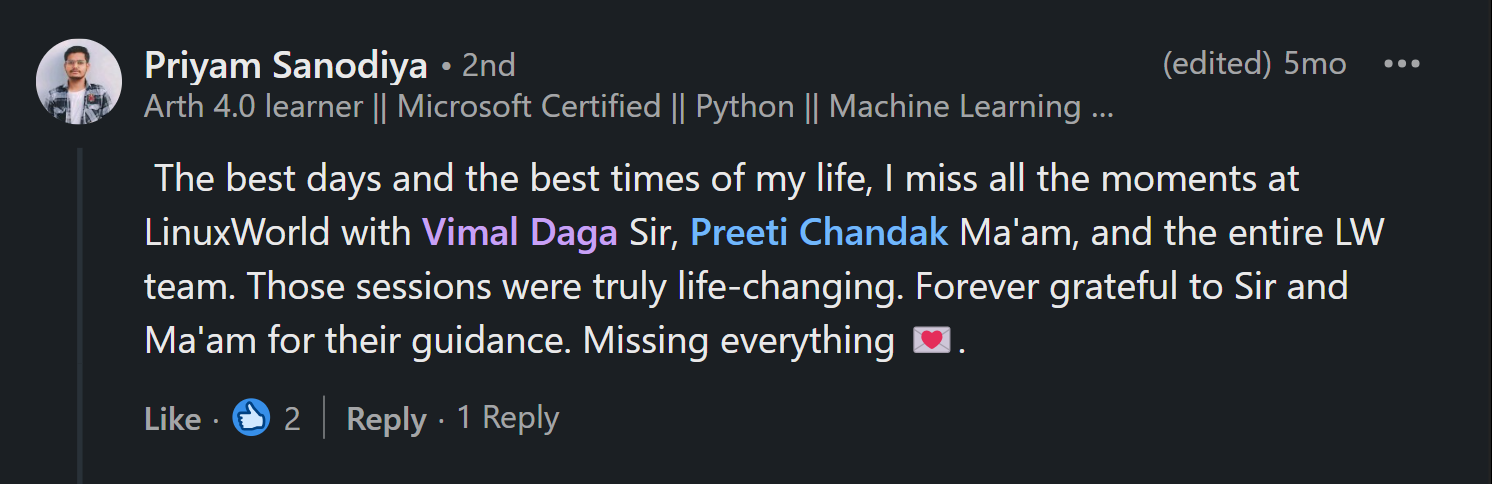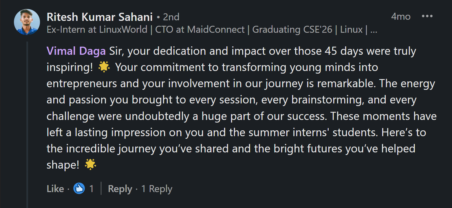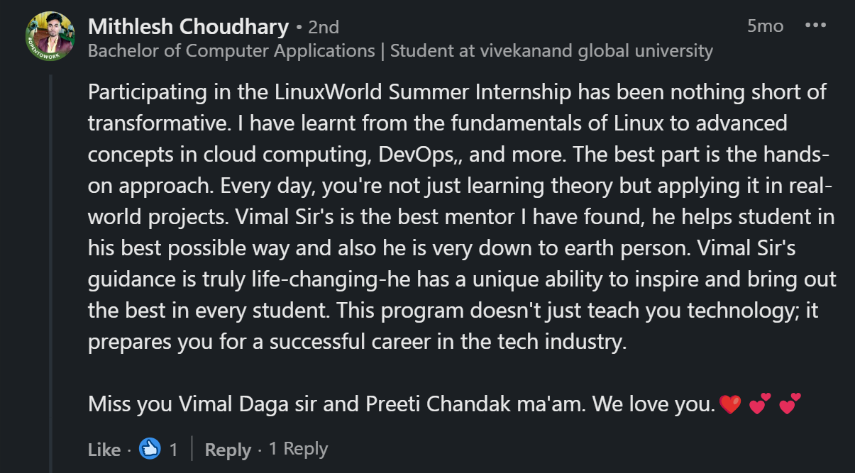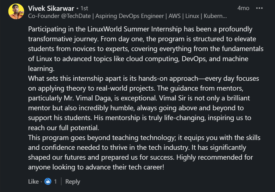 Every Engineer should alteast once, be part of LinuxWorld's Summer Internship Program.