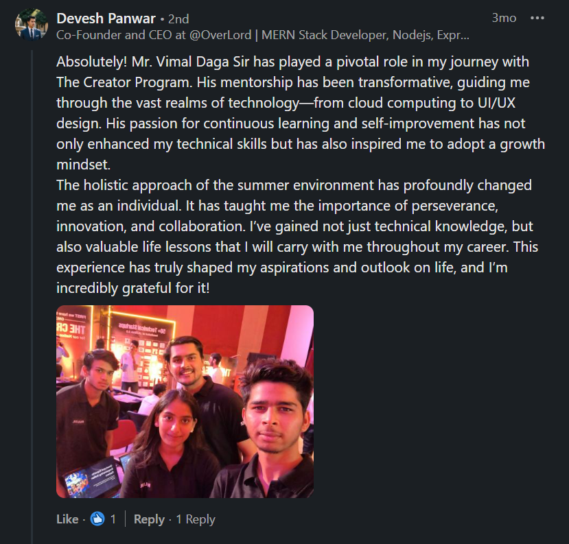 An Opportunity to meet in person & get connected with many industry experts here during the Summer Program. Also know the path to contribute to major communities namely AWS Community, Docker Community, OpenSource Community & many more.